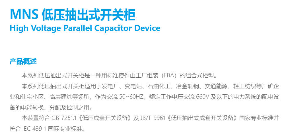 MNS低壓抽出式開關(guān)柜